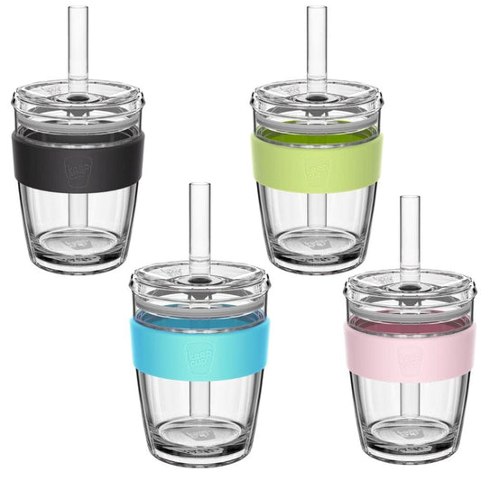 Reuse in style with a sturdy and ergonomic reusable glass coffee cup....