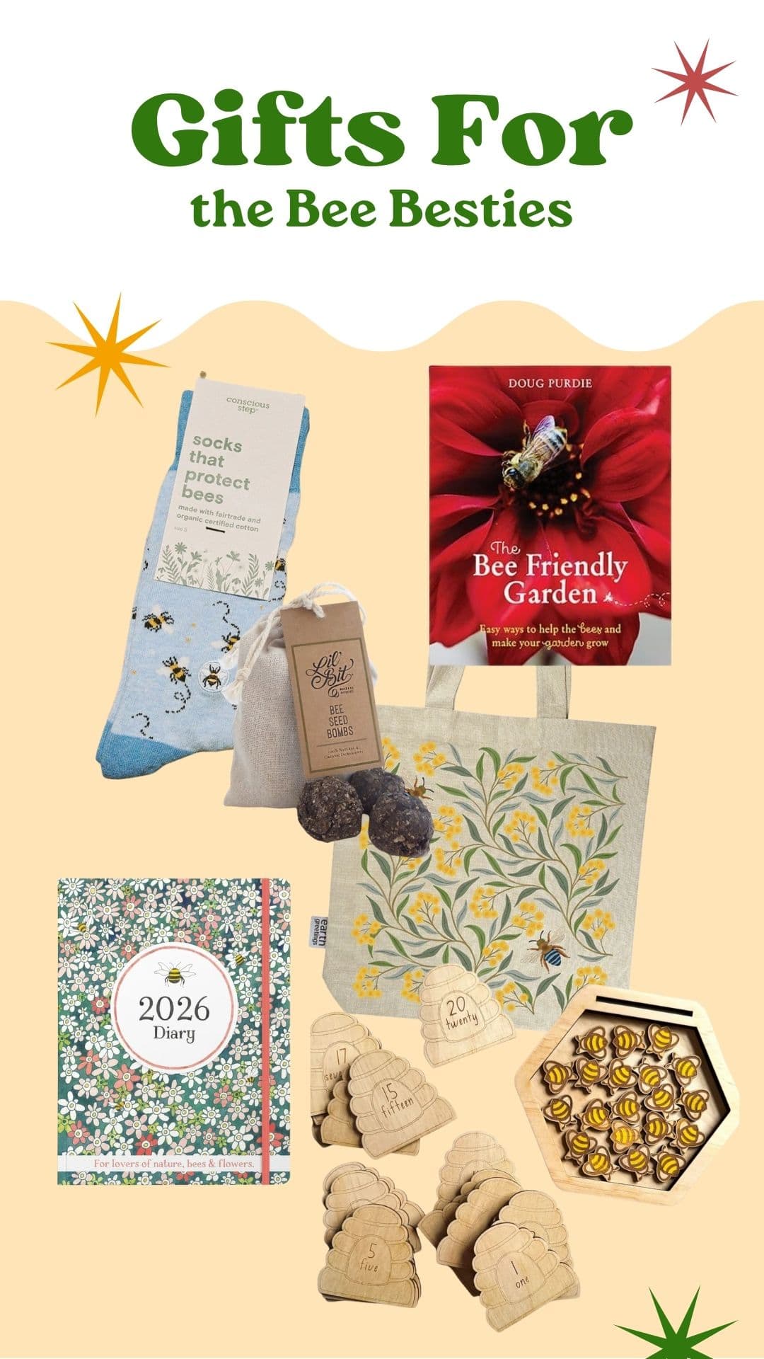Bee seed bombs, bee-themed books, reusable tote bags, dish cloths, beeswax candles or honey jars make lovely, meaningful gifts. They’re perfect for people who care about nature, want to attract pollinators to their gardens, or simply enjoy sustainable, wildlife-inspired design.
