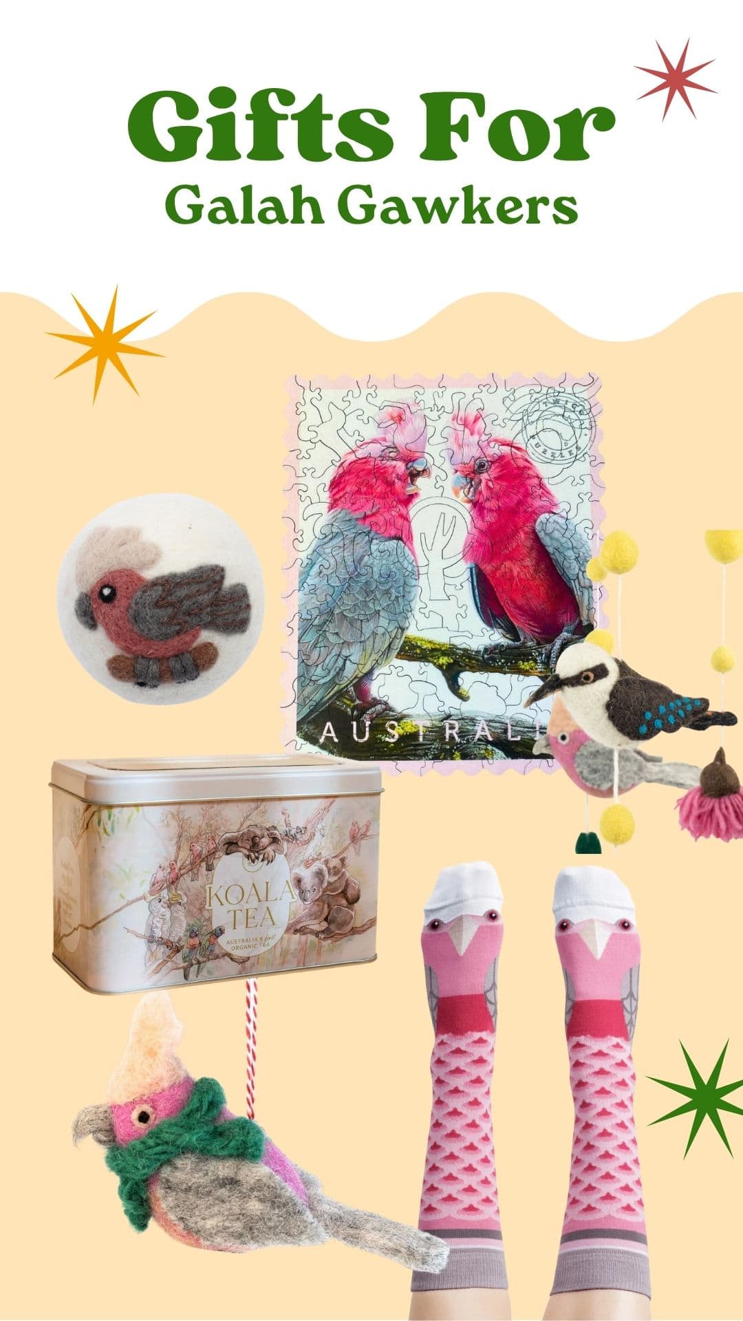 Handcrafted wooden puzzles, socks, and ornaments are all top picks. Each one highlights the beauty of galahs while supporting independent Australian makers.