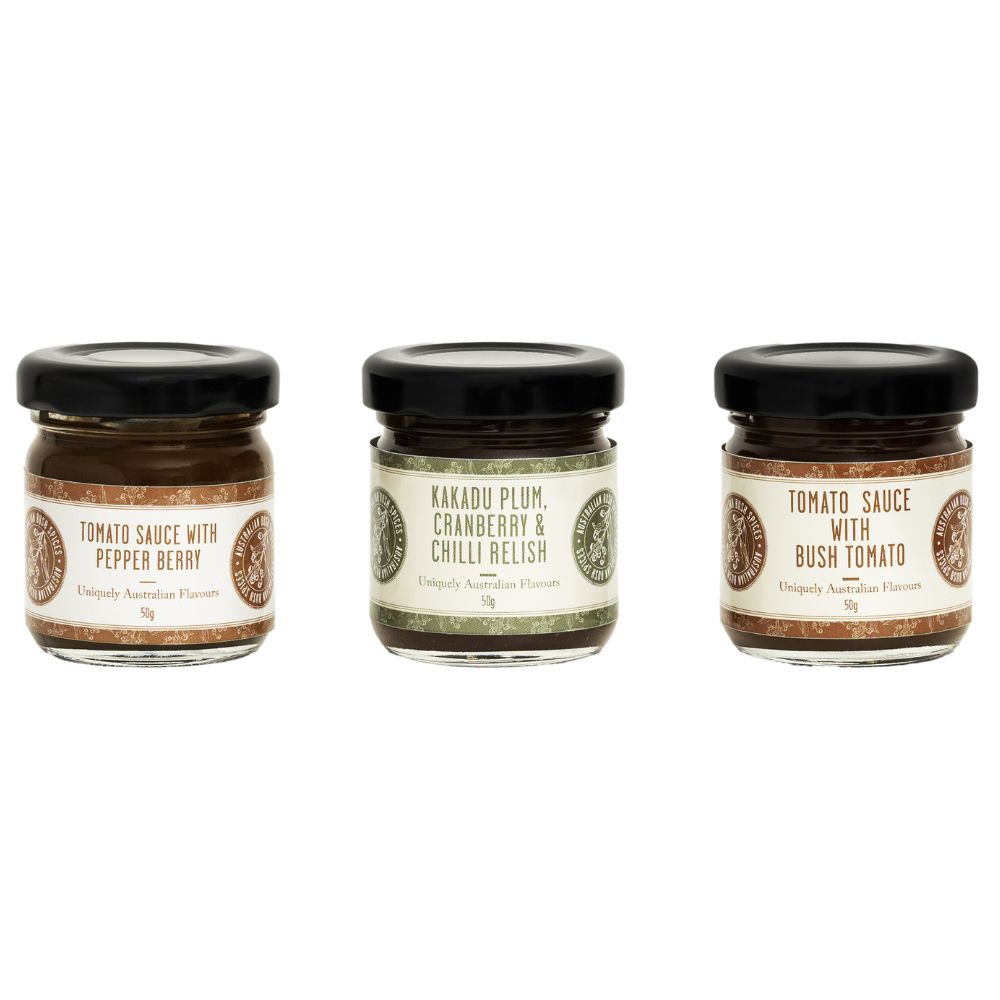 Australian Bush Spices - 3 Pack Tomato Sauces and Kakadu Plum Relish 50g