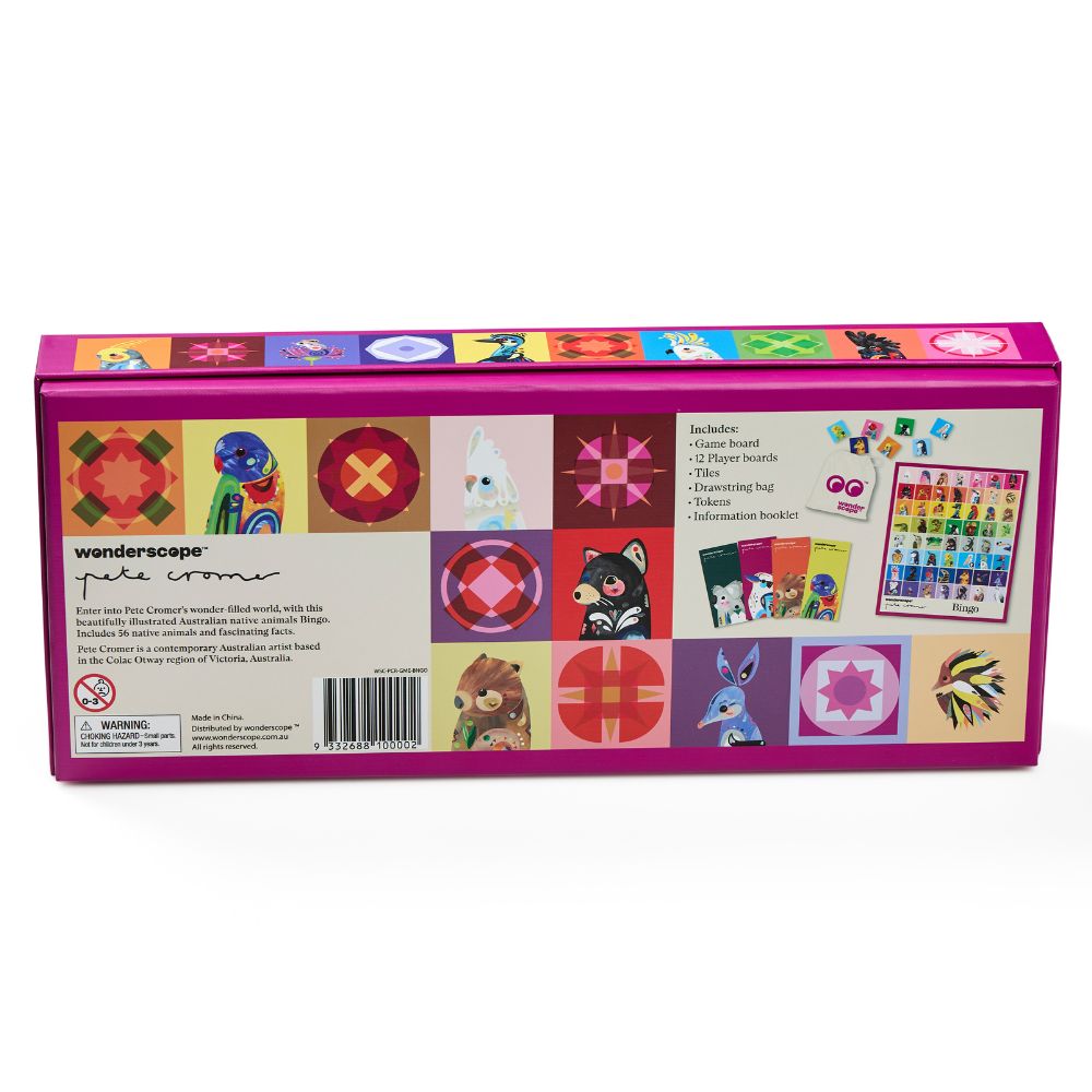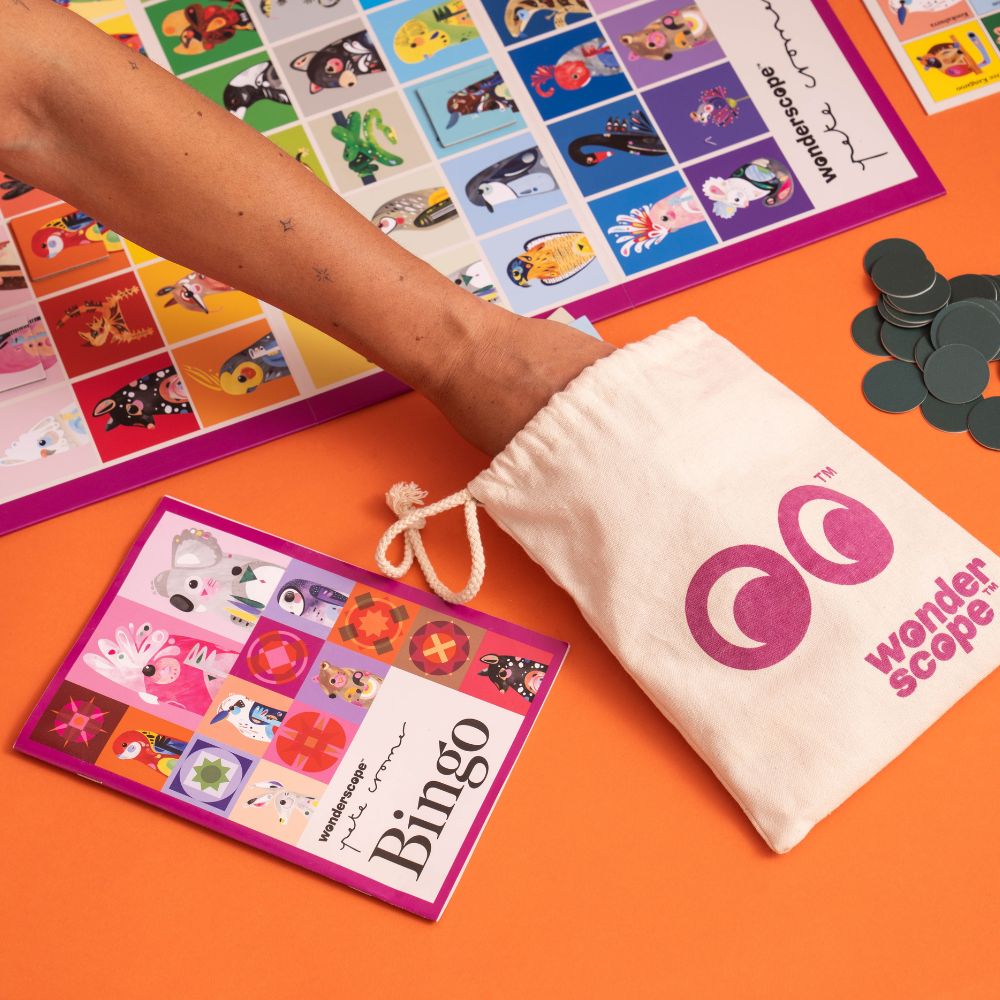 Introducing Wonderscope's Bingo! A beautiful Aussie twist on the classic, featuring Pete Cromer's illustrations on 56 amazing native fauna. Check off each of the animals and be the first to shout 'Bingo!'