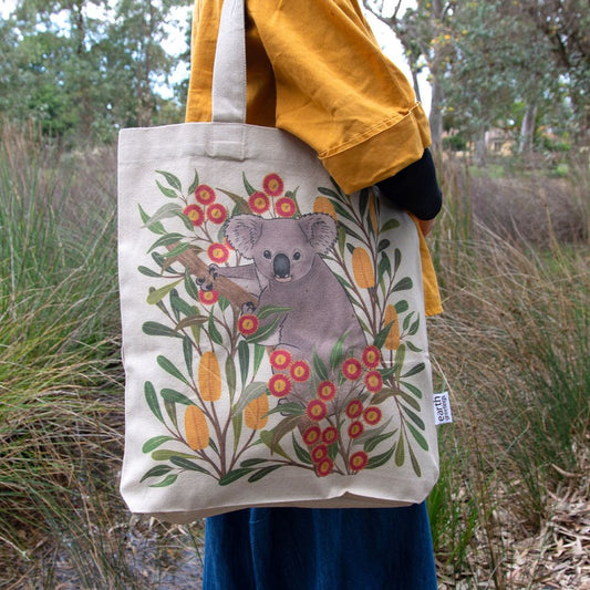 A GOTS certified organic cotton tote bag screen printed in Australia with water based inks.  Soft and durable, this carbon neutral everyday essential features Australiana artwork by artist Negin Maddock.