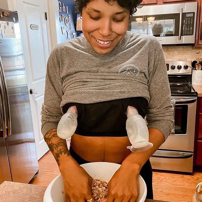 Tips: Encourage let-down by placing a warm flannel on top of your breast and massaging gently. While your child is feeding, attach your Haakaa pump to the other breast to catch precious milk that would otherwise be lost in a nursing pad.