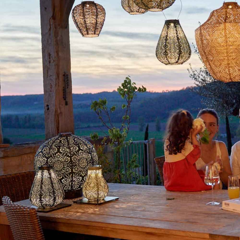 These lanterns are so elegant. I have mine inside by my window to get charged and it makes such beautiiful patterns on the walls. I have been giving them as gifts and everyone loves them. My next purchase will be going outside