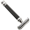 A double edge safety razor with butterfly opening and black textured handle. This heavyweight razor has a longer handle to allow for easy maneuverability and uses Parker's famous twist-to-open mechanism to secure the blade. Use the handle for life and replace only the blades.
