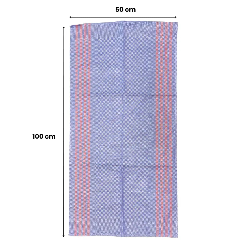 Redecker + Kracht Oversized Tea Towel Blue Check/Red Stripes 50 x 100 cm