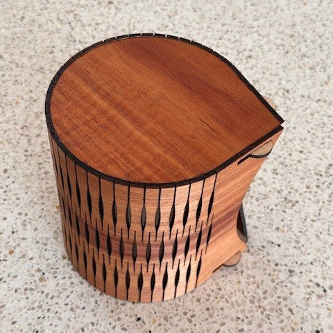 Sustainably sourced plywood (Eucalypt or Blackwood), low-energy rechargeable LEDs, acrylic/plywood frame