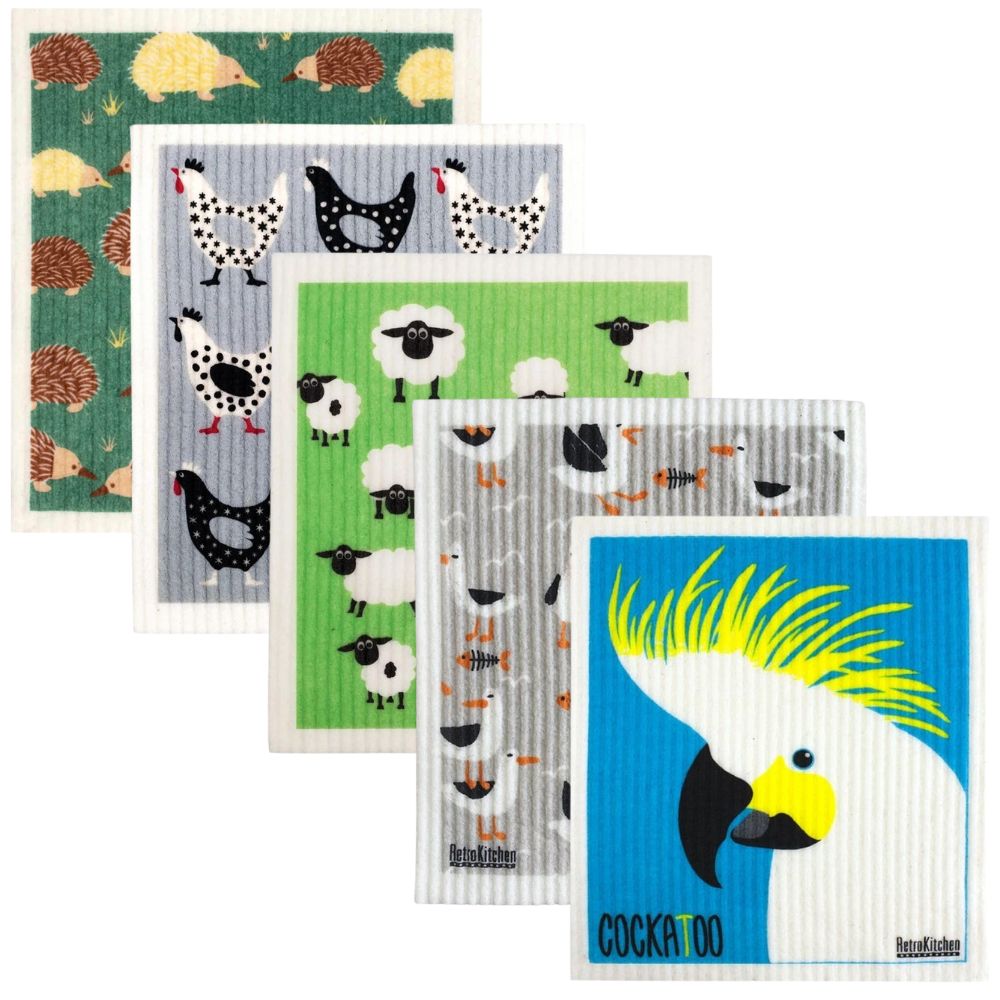 Swedish Dish Sponge Cloth 5 Pack Bundle - Animals