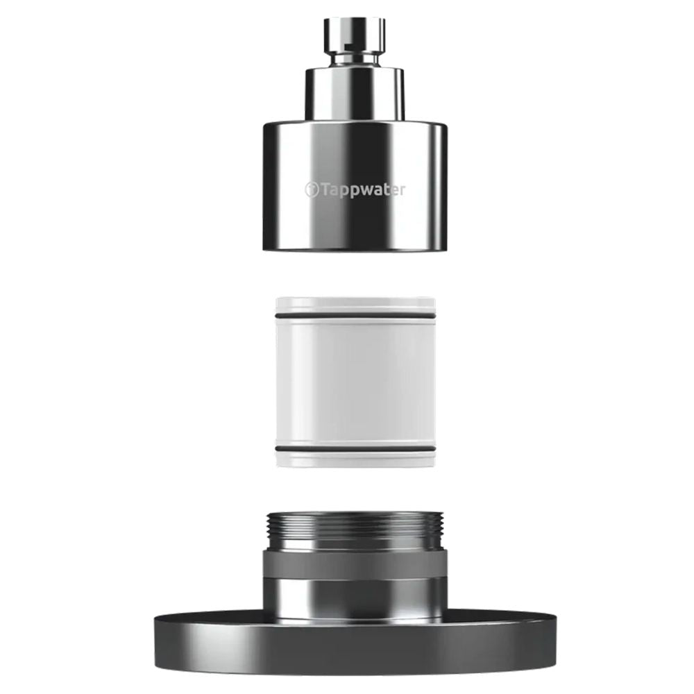 The Tappwater ShowerPro Rain shower head integrates filtration with Swedish Mineral Rock™ to not only filter out contaminants, but add in benefical minerals for healthier skin, stronger hair, and a premium shower experience. With a 5-stage microfiltration, the shower filter removes 70+ contaminants, including chlorine, heavy metals and microorganisms. The long-lasting filter also adds calcium, magnesium and potassium to protect skin and hair.