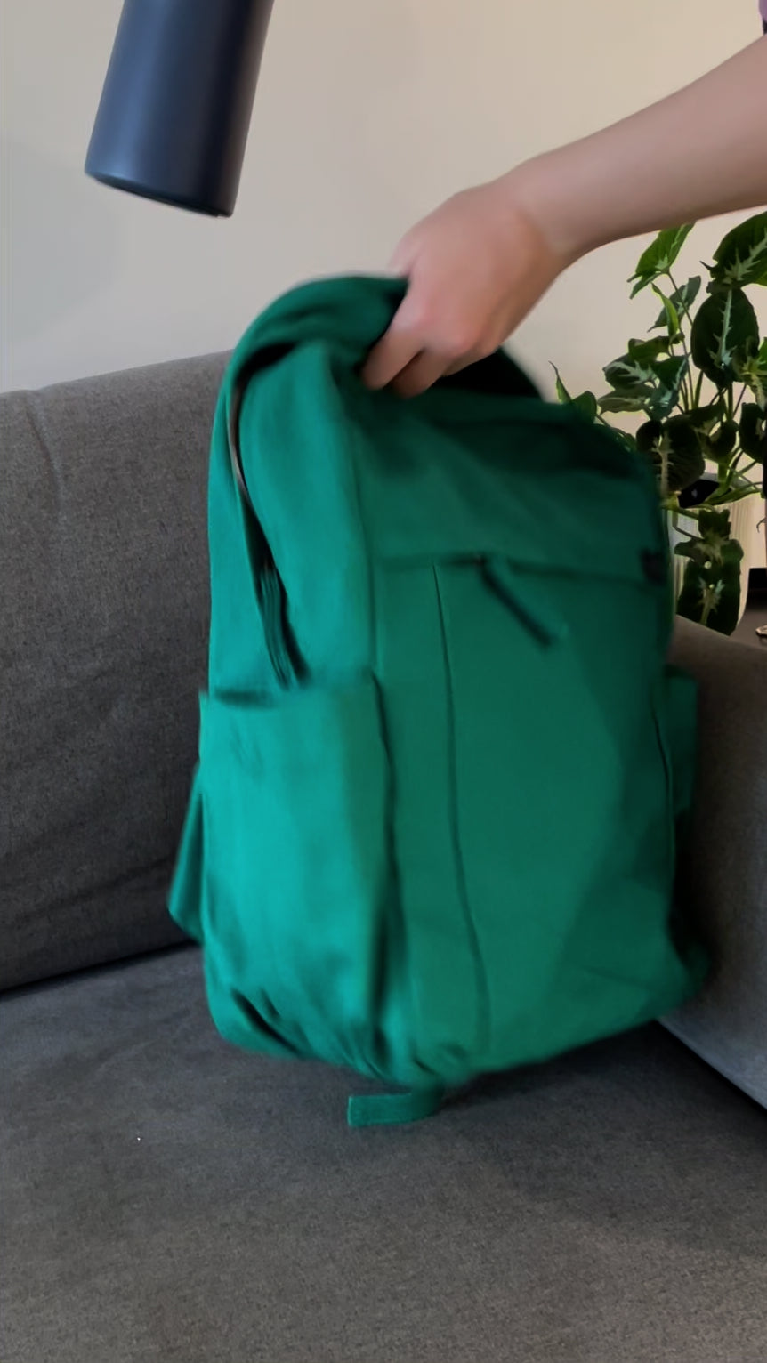 I’ve been looking for a cotton backpack for a long time and this one is just the right size and comes in a very cute mustard yellow.