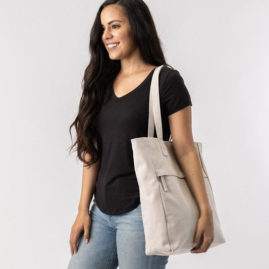 A generously sized backpack made from GOTS certified organic cotton. Featuring clean lines, an internal laptop compartment for 13-15 inches, a large front pocket with zipper, two side pockets for water bottles and YKK lead-free antique finish metal zippers. Available in a range of colours.