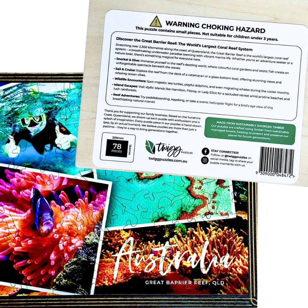 Explore Australia's iconic landmarks and animals with Twigg Puzzle's beautiful Postcard Series, featuring photography of Australia's landscapes, fauna and landmarks. Each puzzle comes with its own frame board, making it easy to build onto and display once completed.