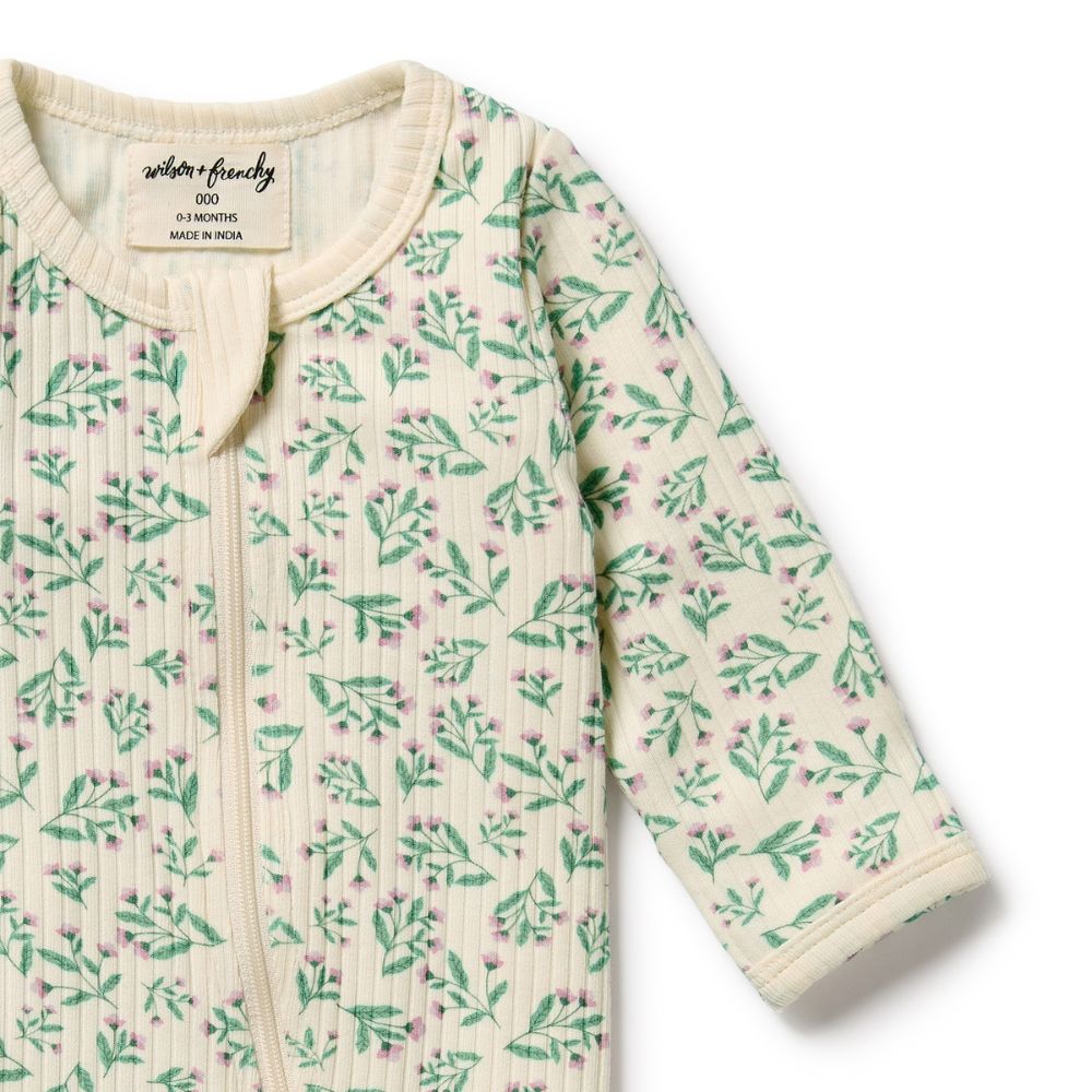 Keep your newborn comfy and cosy in this practical yet adorable footed zipsuit from Wilson and Frenchy. Made from GOTS-certified organic drop needle cotton, it’s soft, breathable, and gentle on delicate skin. Featuring a pretty periwinkle print all over, this zipsuit is designed with fold-over mittens (in sizes newborn to 000) to help prevent scratches, and a two-way zip for quick and easy nappy changes. With the option of a footed design, it’s perfect for keeping little ones snug as they grow.