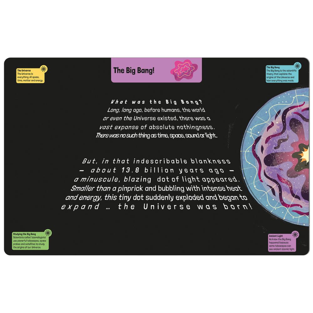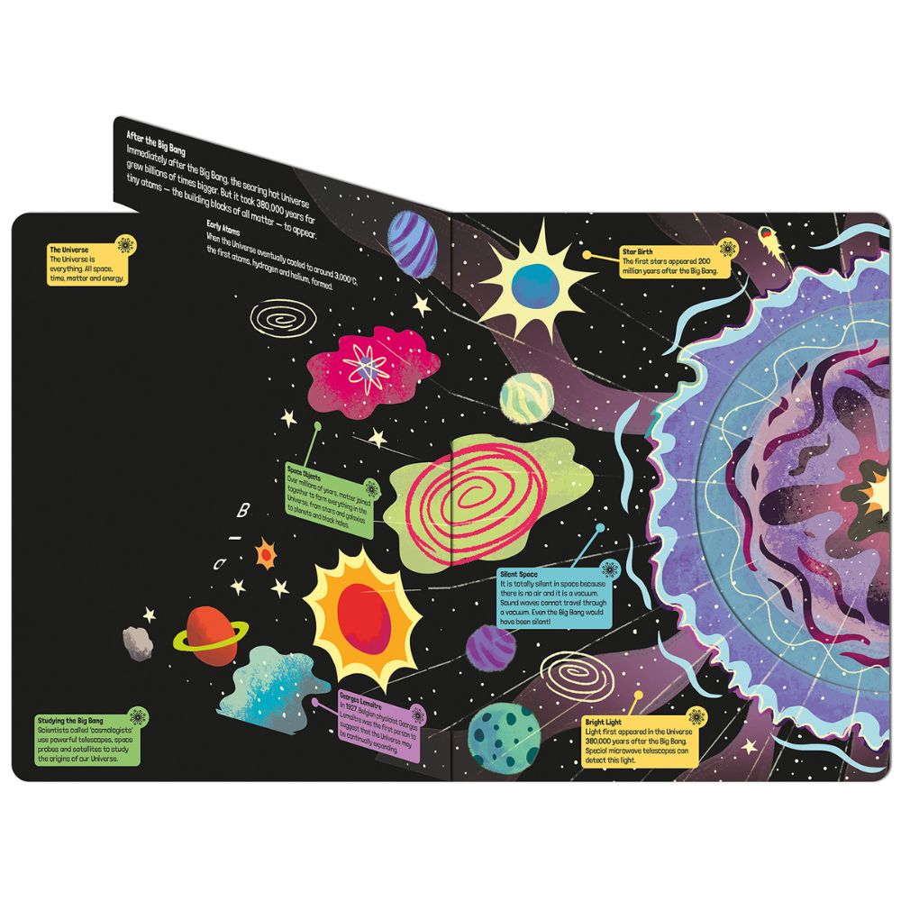 With mind-blowing facts to discover and scenes that transform with the turn of each die-cut page, there's plenty to explore and learn about the Universe, and how the Earth and our Solar System came to be. From the Big Bang, the creation of the first stars and the Milky Way to the Solar System and the future of the Universe.